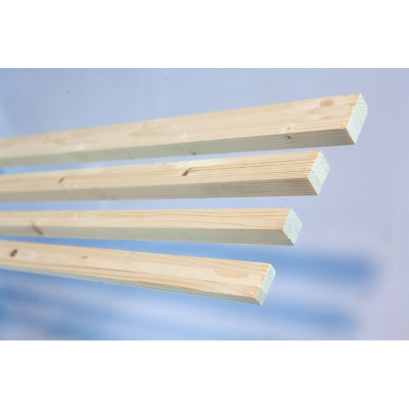 Listón fabricado en madera de abeto con acabado sin cepillar al natural con pequeños nudos de una forma cuadrada. Ideal para rematar trabajos de carpintería, como marcos de ventanas o puertas, para usar en el rastrelado de suelos, para unir y fijar estructuras o incluso para hacer muebles. Cuenta con el sello FSC, que certifica que la madera proviene de bosques gestionados de forma.