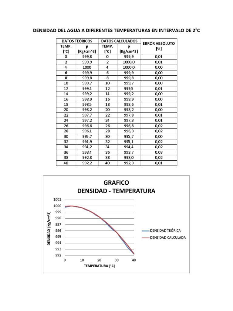 Variación de la densidad del agua con la temperatura Download